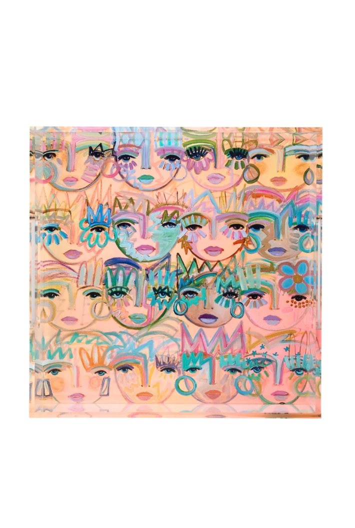 Introducing our 12" x 12" x 3" acrylic tray, where art meets everyday functionality. This sleek tray boasts an original art piece delicately printed onto its surface, adding a touch of artistic flair to any space. Crafted from durable acrylic, it's both a practical addition and a visual delight.