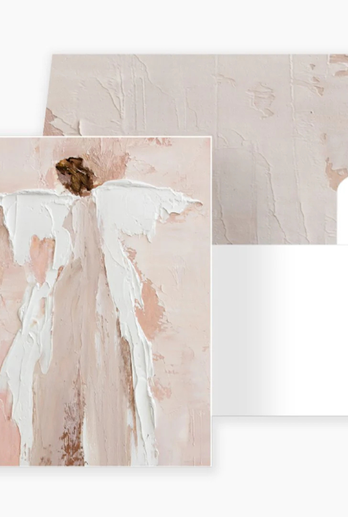 Everyone loves a handwritten note and our beautiful fine art notecards are a blank canvas for your words. Whether you are sending a note of congratulations, encouragement or sympathy, our notecards share your thoughts with beauty and flair. Our Gracious One Notecards feature the same angel throughout each pack and they also include a beautiful coordinating lined envelope. There are a total of 14 notecards and envelopes included in each pack. Notecards are a 3.75 x 4.25 inch fold over card, blank inside.