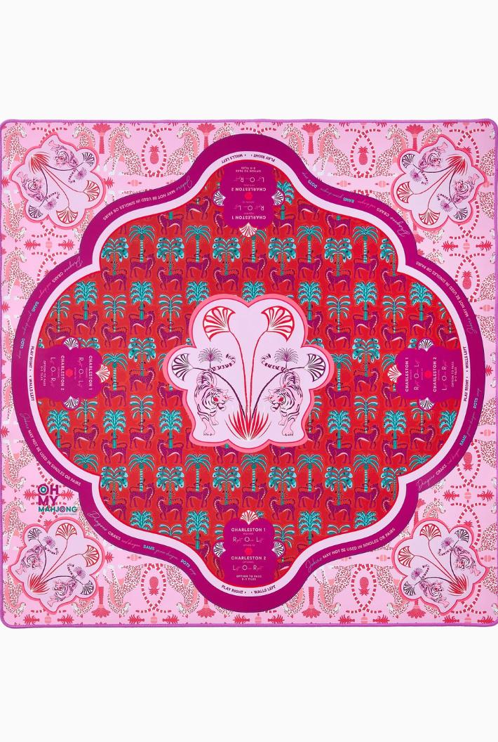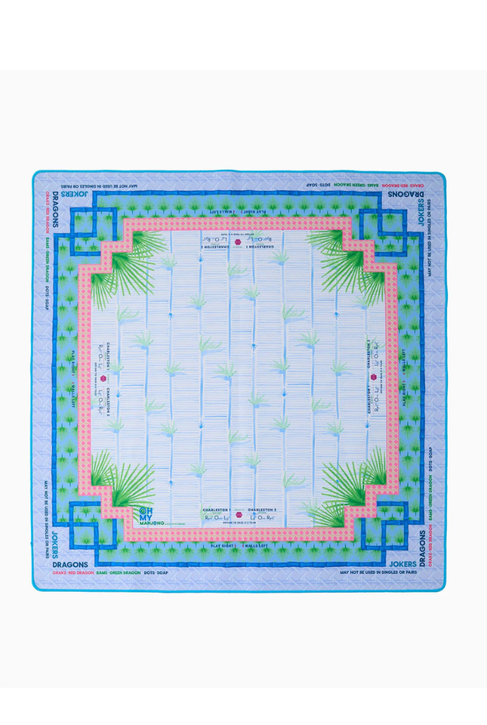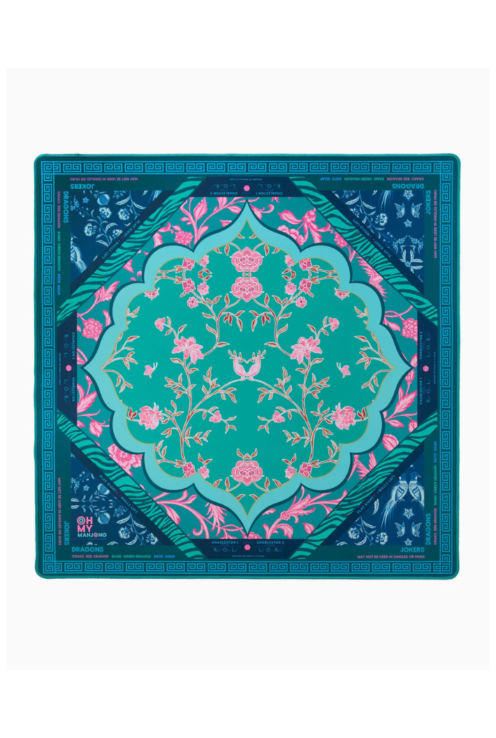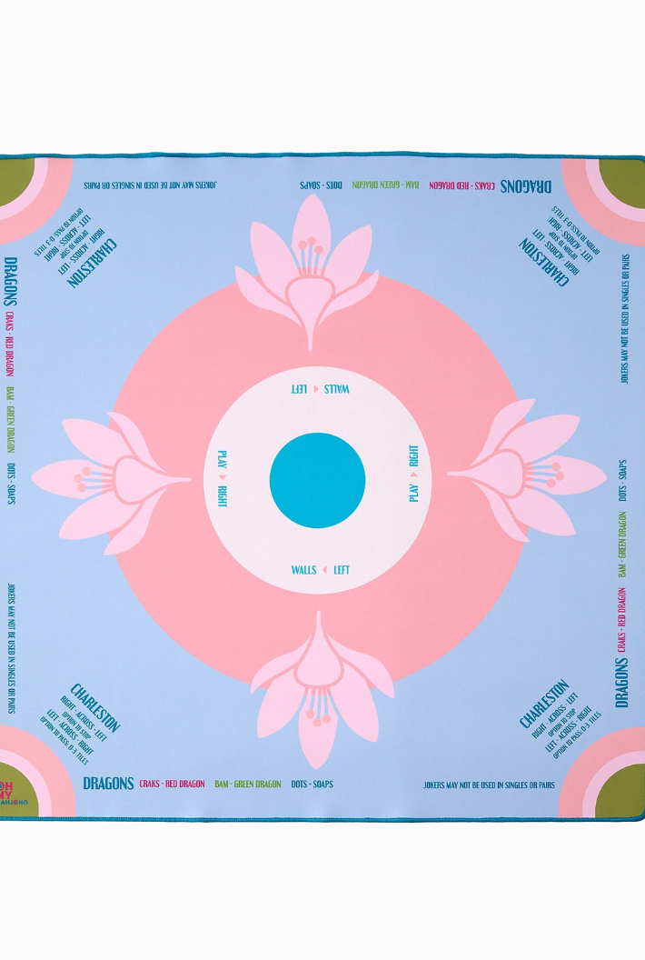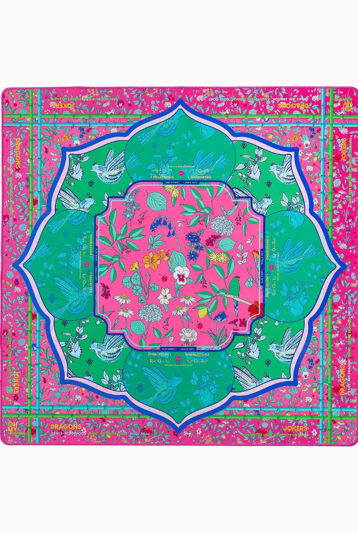Introducing the Mahjong Mat! This vibrant mat features a stunning design and a non-slip surface to ensure your tiles stay put during even the most intense games. The Mahjong mat offers clear explanations directly on the mat, including the Charleston, suit and dragon pairings, wall direction, and the "no jokers in a pair" rule. Pairs perfectly with the Mahjong Tiles!