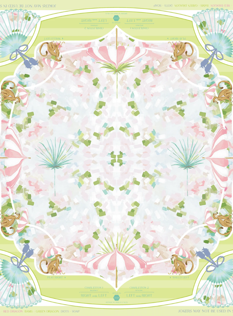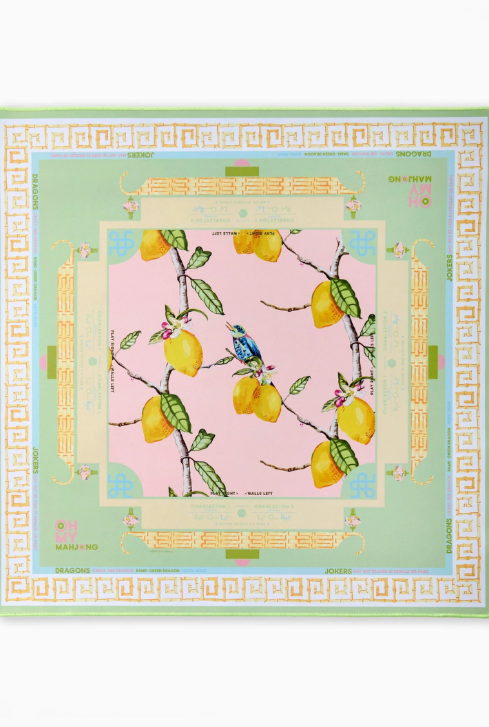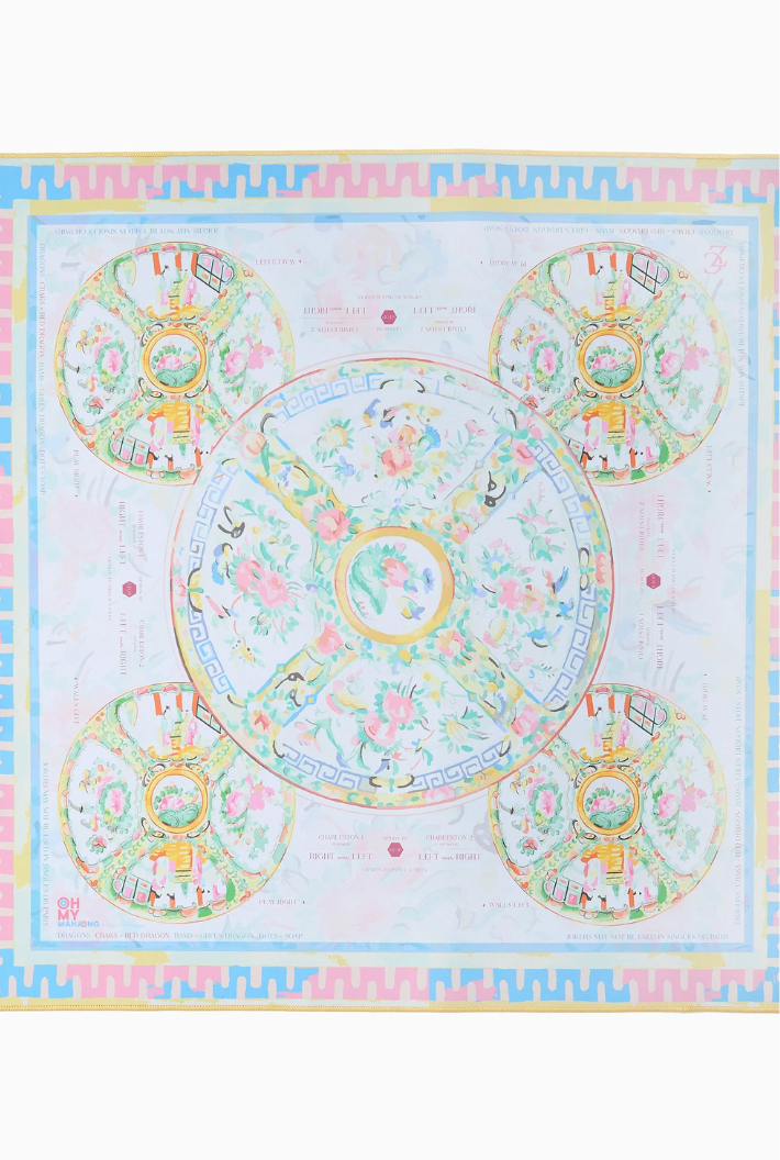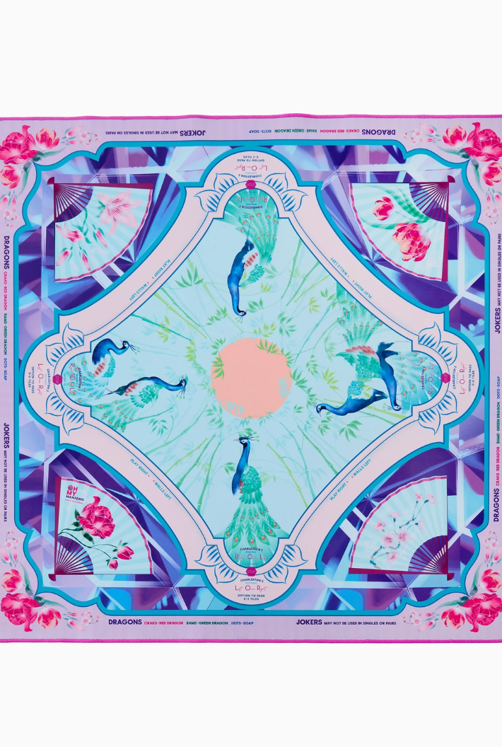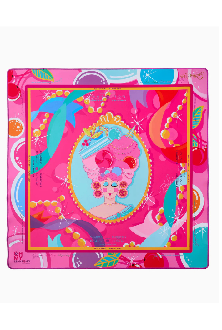 Introducing the Mahjong Mat! This vibrant mat features a stunning design and a non-slip surface to ensure your tiles stay put during even the most intense games. The Mahjong mat offers clear explanations directly on the mat, including the Charleston, suit and dragon pairings, wall direction, and the "no jokers in a pair" rule. Pairs perfectly with the Mahjong Tiles!