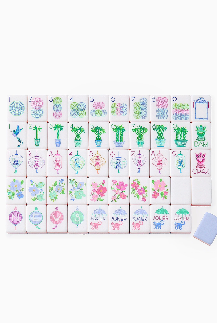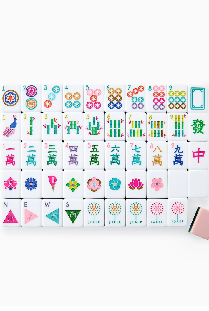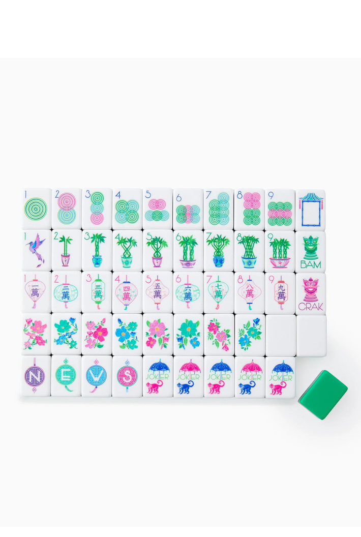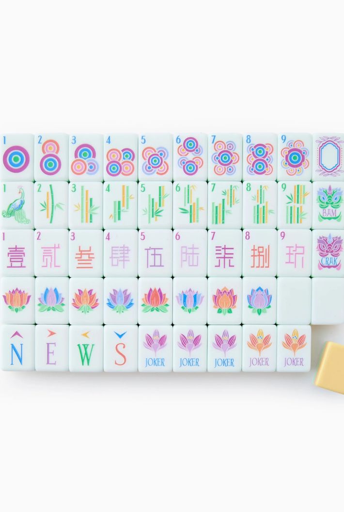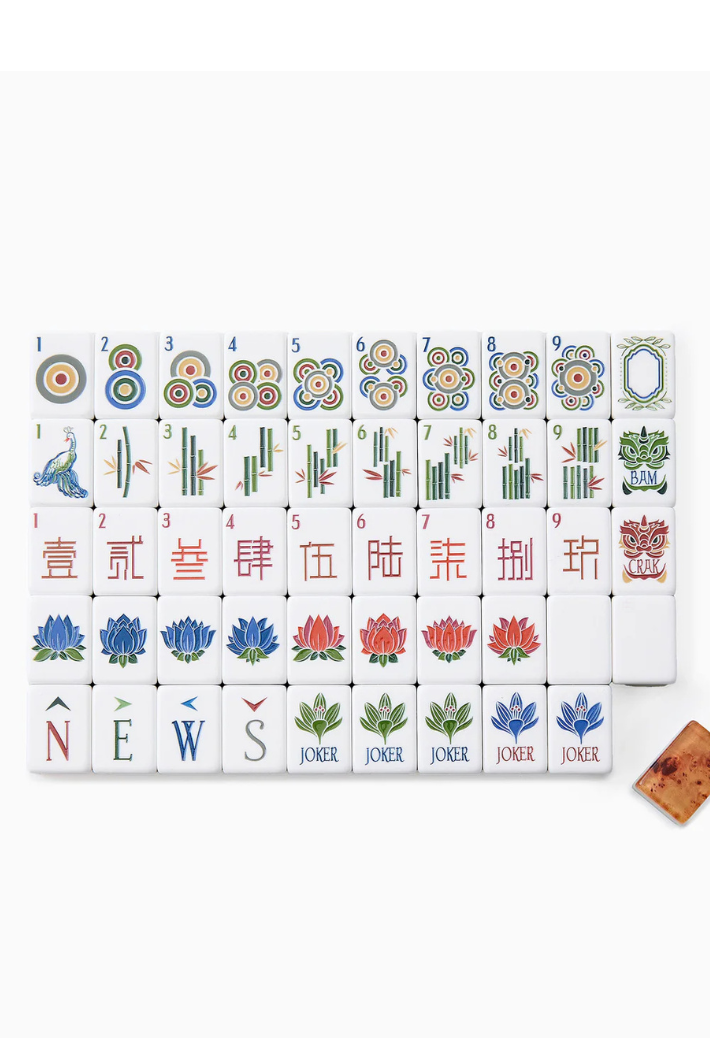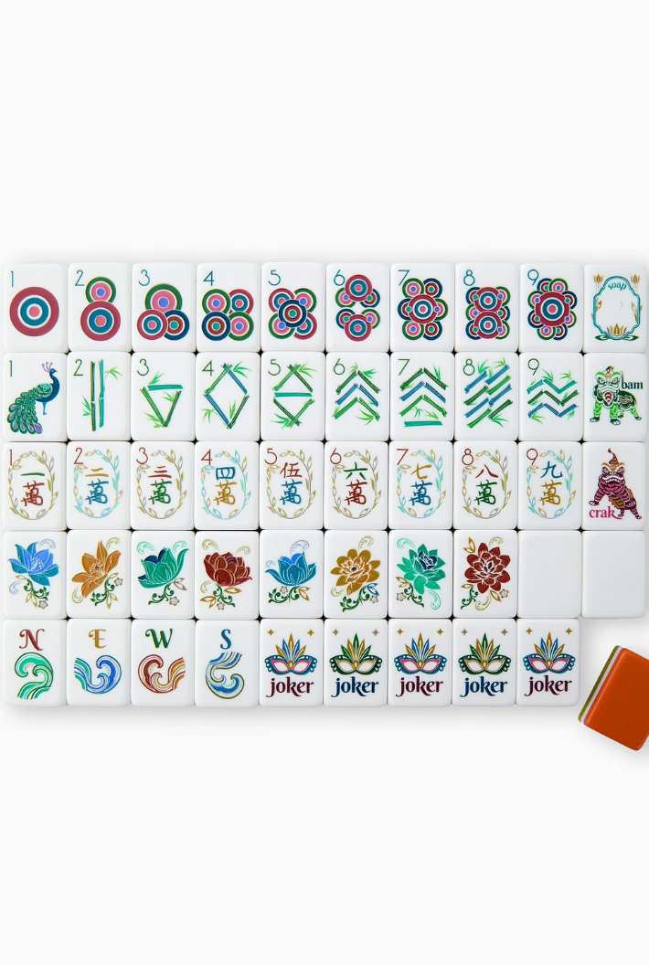 Set includes Tiles, Dice/Coin Bag and 4 Instructional Cards (If playing American Mahjong, will need to purchase NMJL Playing Card separately)