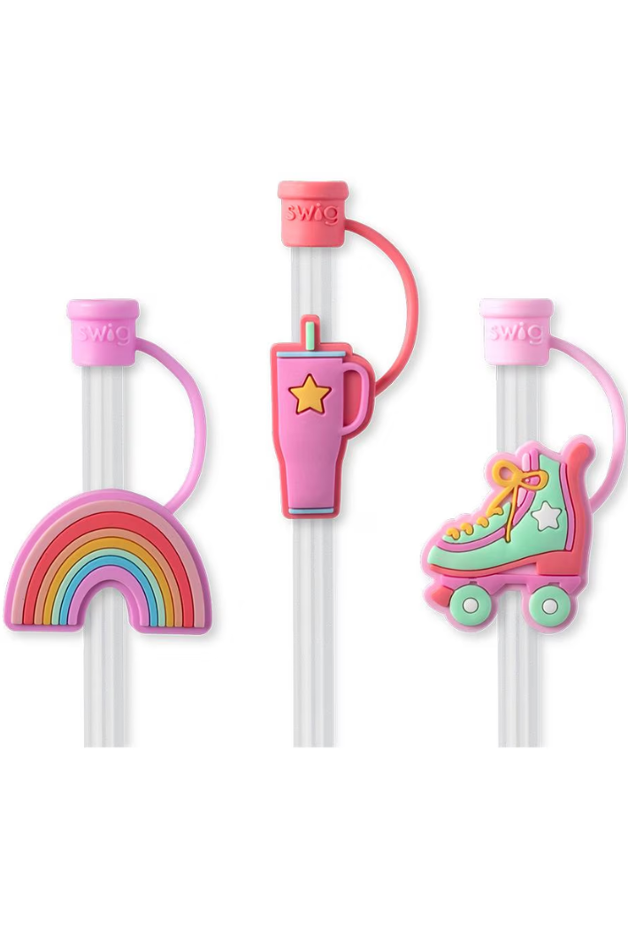Sip in style while keeping your drinks clean and safe with our adorable Straw Topper Sets! This set features three reusable straws with whimsical silicone charms featuring protective caps. Keep them all for yourself or share them with a friend!