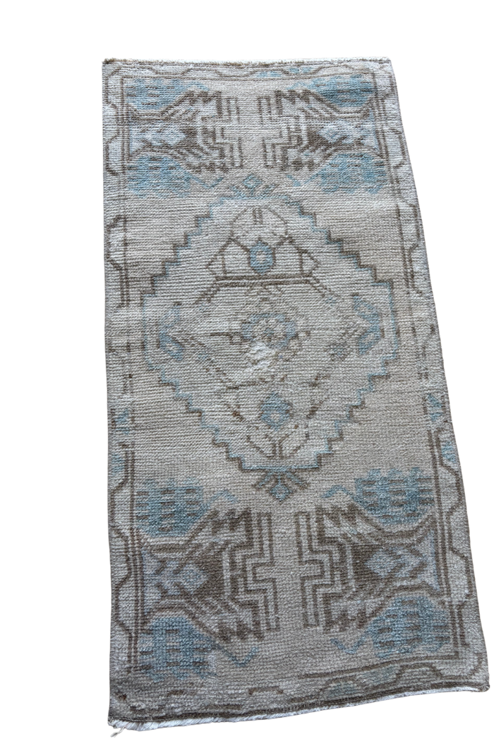 Turkish Mini Rug 2x3- Cream & Blue